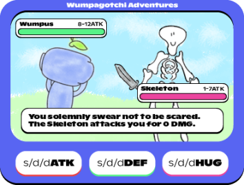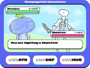 “Wumpagotchi Adventures”. You can use three commands: s/d/dATK,